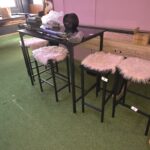 Ensemble table haute 4 tabourets, lampe déco