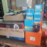 Lot pièces auto sur établi (lot filtres et disques de frein)