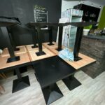 Quinze tables de restaurant noir carré