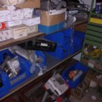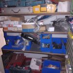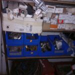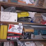Etagère du fond : malettes d'outils/quincaillerie/fermes portes…