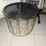 Table basse métal doré, plateau laqué noir